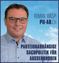 Roman Wäspi (Jahrgang 1971) ist verheiratet und Vater einer Tochter (16 Jahre) und eines Sohnes (14 Jahre). Er ist gelernter Hochbauzeichner und hat nach seiner Lehre am Abend-Technikum Architektur studiert. 1998 gründeten er und sein Bruder Marc die Firma Wäspi Werbetechnik mit Sitz in Herisau. Roman Wäspi ist seit 2019 im Einwohnerrat von Herisau und Präsident der Einwohnerratsfraktion von Gewerbe/ PU.